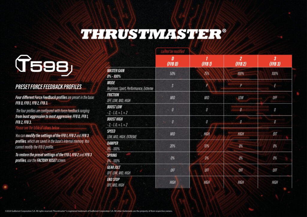 Adjust settings and save your profiles directly via the Race Dash screen. More than 10 settings are configurable, including the innovative GEAR JOLT to feel gear shifting in the wheel rim*. In games, Race Dash displays more than 10 items of race information* such as speed, best time, position or race flags. *List of compatible games on the Thrustmaster website.